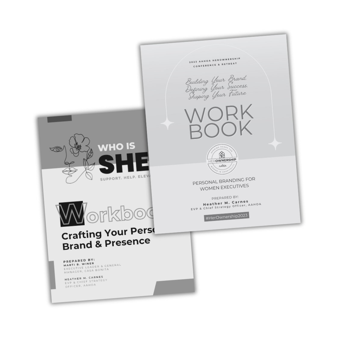 Heather Carnes is the author and creator of multiple workbooks on personal branding, and has spoken at industry conferences and national stages. Ask us about hosting a workshop or inquire about having Heather speak or moderate at your events, where she can share her knowledge in marketing, communications, personal branding, thought leadership, and executive presence.